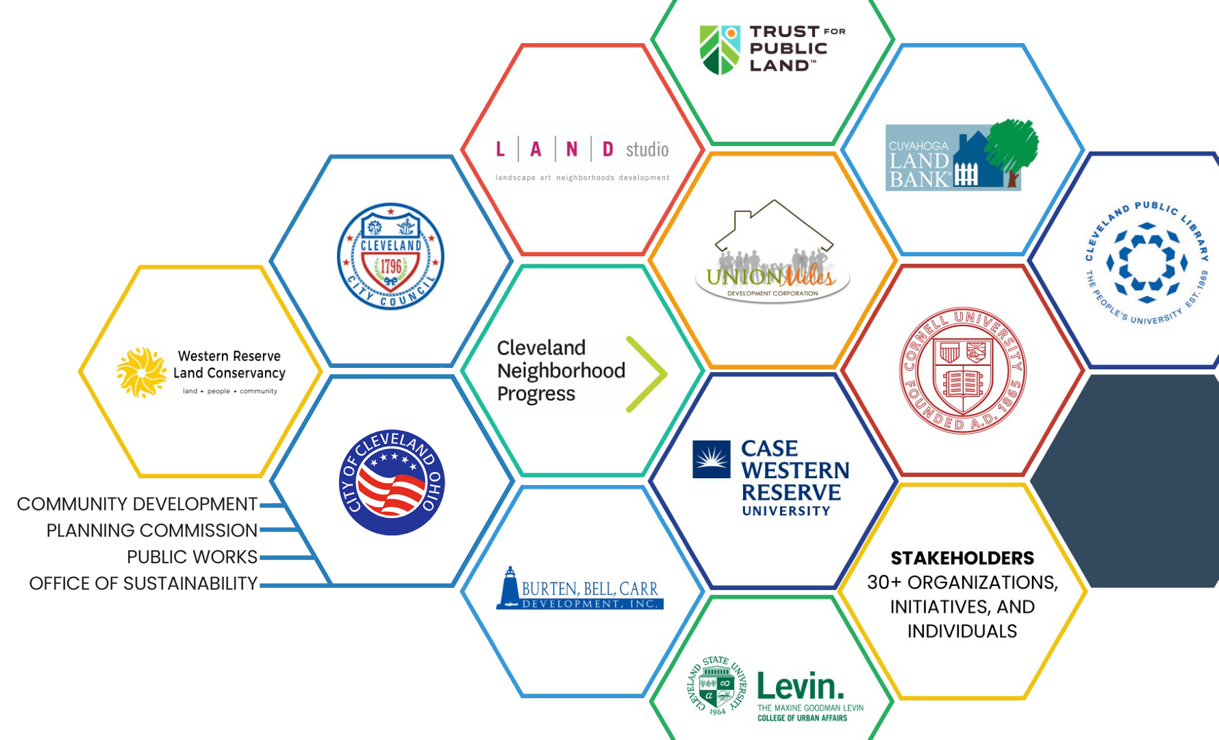 CLEVLOT is a collaborative initiative, collectively built by a group of project partners and participants. The initiative is funded through an US EPA Grant administered by Western Reserve Land Conservancy, who works with cities and organizations throughout Ohio to revitalize urban neighborhoods through the reclamation and transformation of vacant properties, urban reforestation, code enforcement, vacant land reuse, and the creation of trails and high-quality green space.
